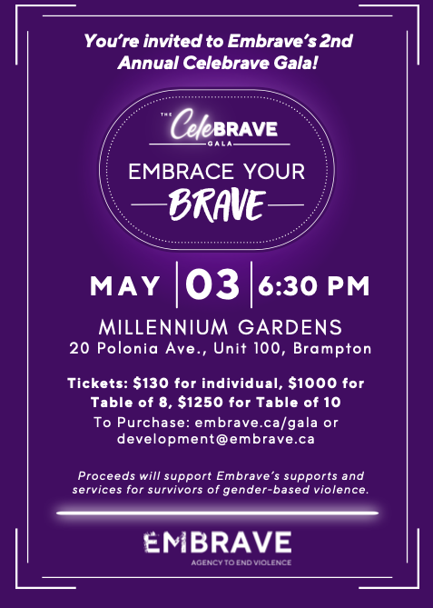 Together we embrace the bravery of survivors and hear their stories of strength and resilience. You will enjoy an unforgettable evening featuring dinner, dancing and fabulous entertainment. Together we will highlight the bravery of survivors and the important work of Embrave in supporting survivors.