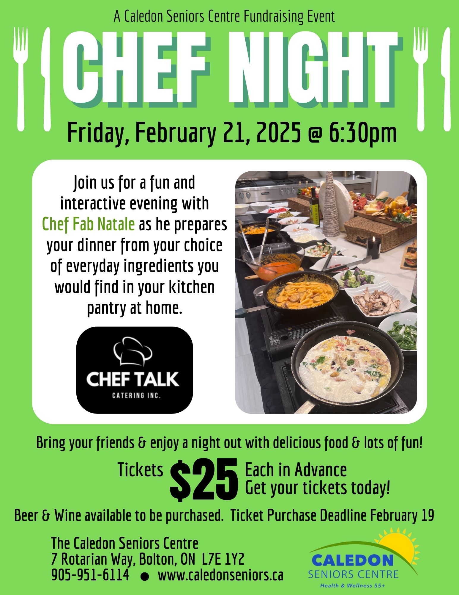 The Caledon Seniors Centre will be hosting a fundraising event, Chef Night on Friday, February 21, 2025.