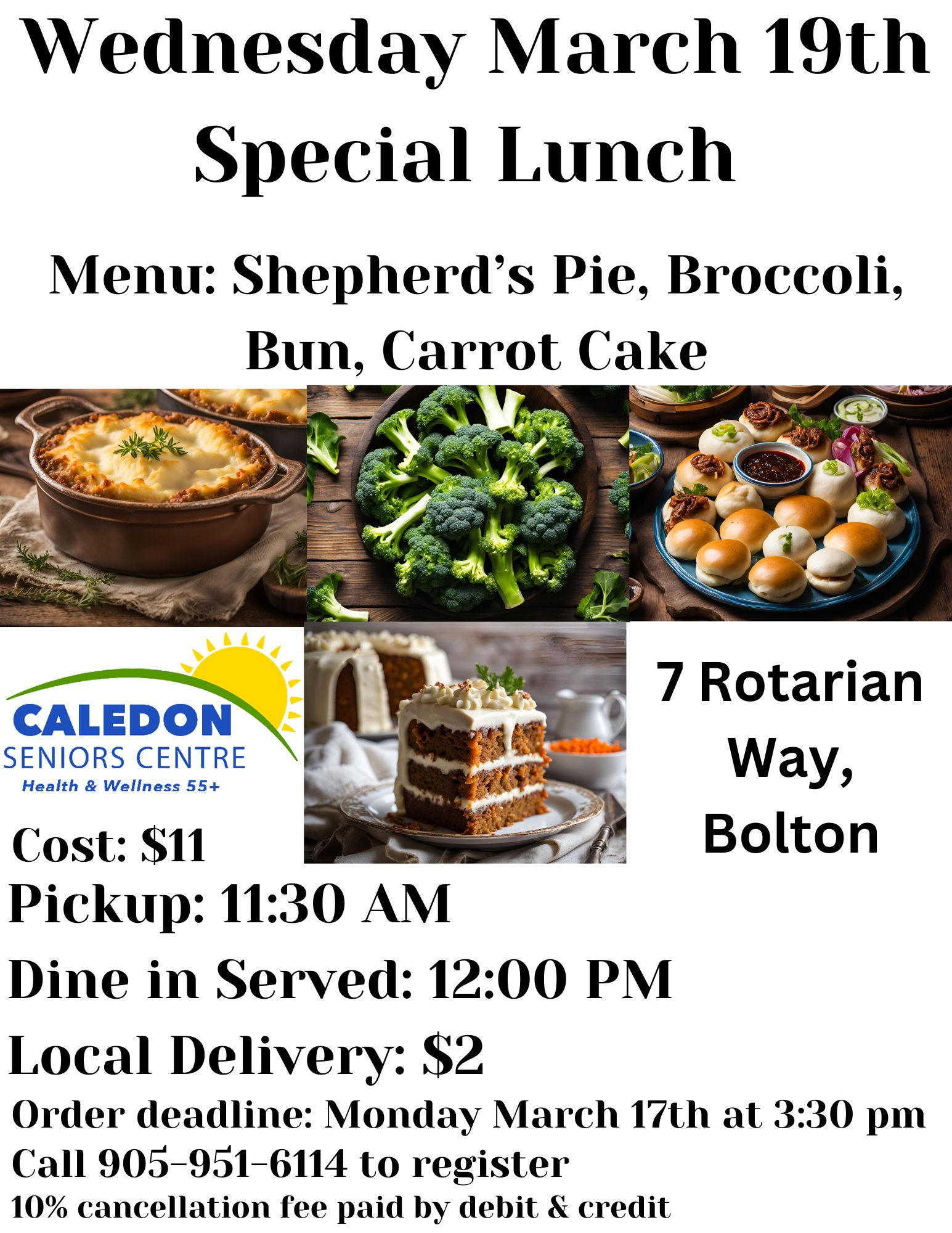 The Caledon Seniors Centre at Rotary Place in Bolton is hosting their monthly Special Lunch on Wednesday, March 19, 2025.